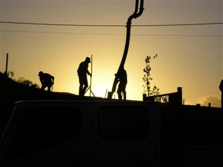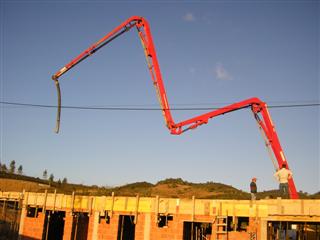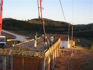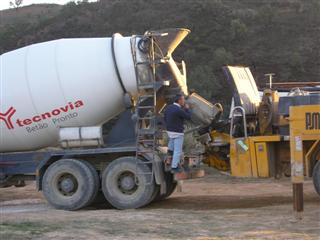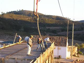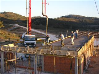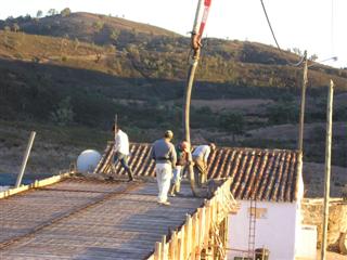 Paulo heeft deze week te weinig mannen dus laat hij een betonmixer en een "Putzmeister" komen.
