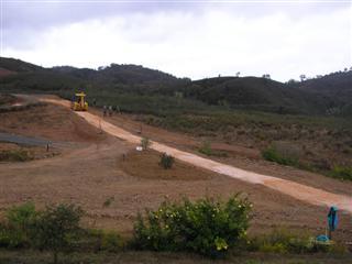 De eerste vracht 'tout venant' voor de wegverharding is gebracht. Het was nog hard aanpoten voordat de